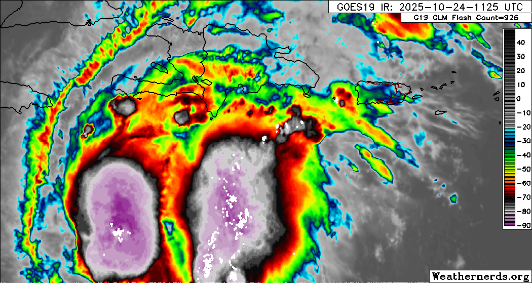 El viernes por la mañana, Melissa se encontraba a 260 km al sur-sureste de Kingston y a 445 km al suroeste de Puerto Príncipe.