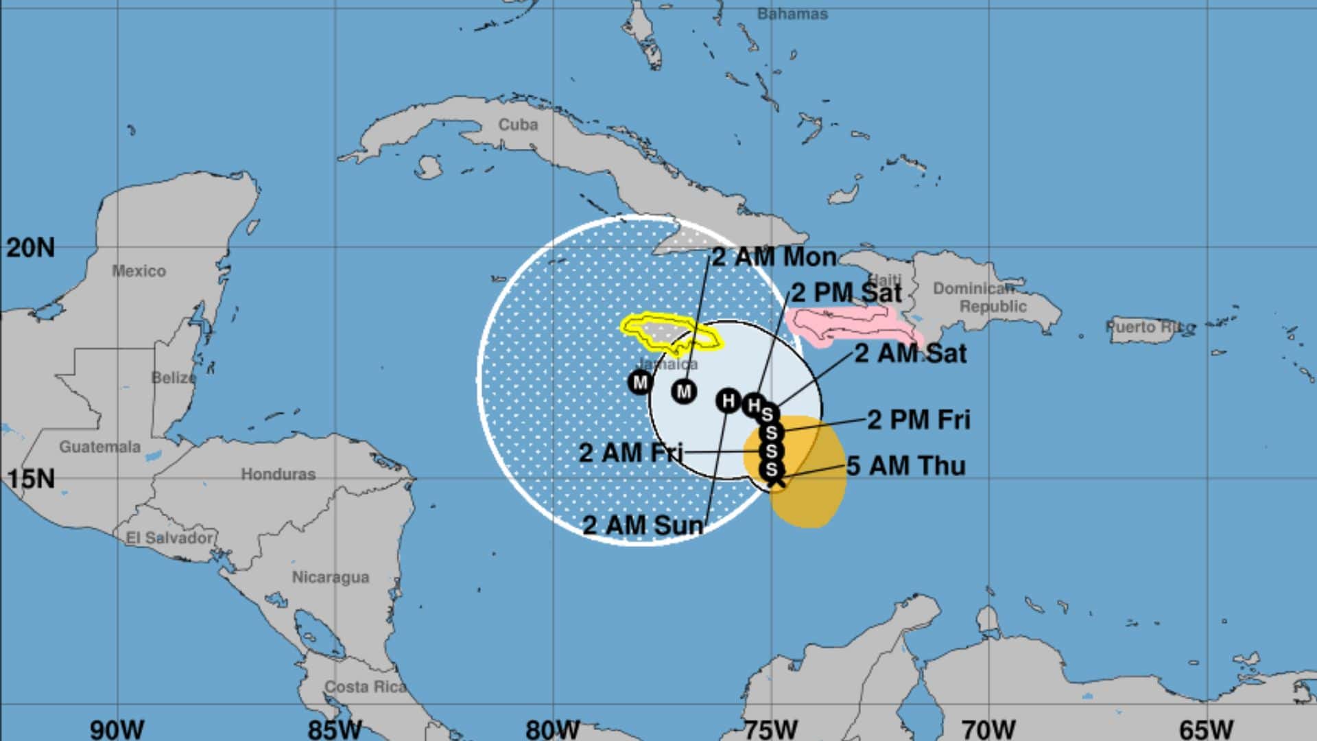 El CNH advirtió que las condiciones de huracán son posibles en el área de vigilancia en Haití a partir del viernes, mientras que Jamaica podría comenzar a presentar condiciones de tormenta tropical ese mismo día.